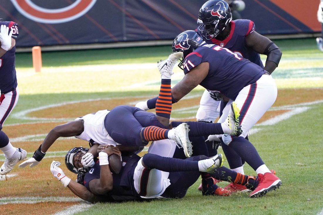 Mack followed a 10-yard sack by Bilal Nichols by taking down Watson for a safety. The Bears went 66 yards on the next drive, with Darnell Mooney scoring from the 12 on a swing pass to make it 23-7 with 3:22 remaining in the half.