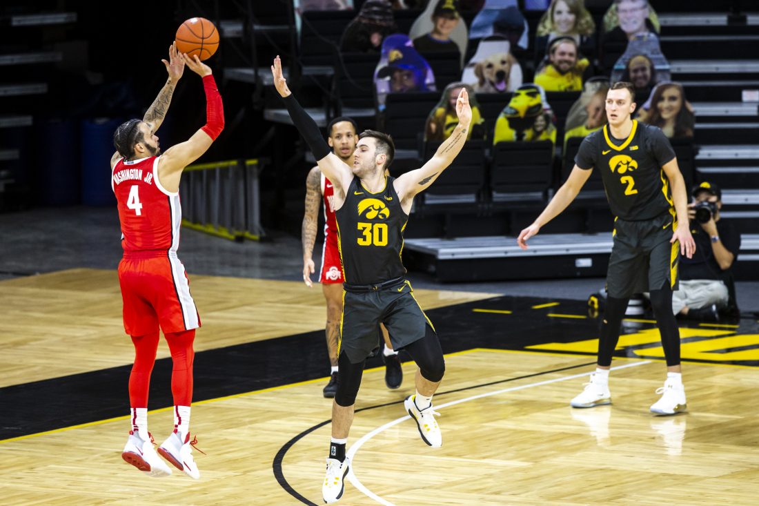 The Buckeyes held Iowa’s Luka Garza, the nation’s leading scorer at 26.5 points per game, to 16 points. Garza had five second-half points, making 2 of 8 shots.