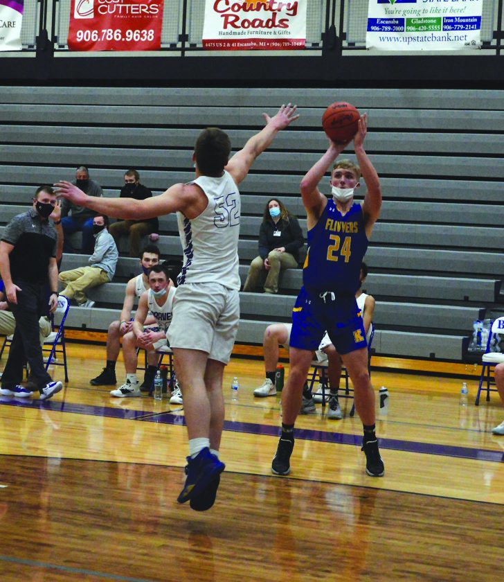 At the start of the second half, Gladstone (4-3) held the lead 30-28. During the third quarter, they managed to hold on to it — aside from a brief 20 seconds that Kingsford led 31-30 off a three from Andrew Paupore — until about the two-minute mark. That’s when shots started going in for the Flivvers.