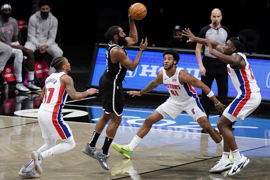 NEW YORK (AP) — James Harden scored 12 of his 24 points in the fourth quarter and had his ninth triple-double with the Nets to help Brooklyn beat the Detroit Pistons 100-95 on Saturday night.