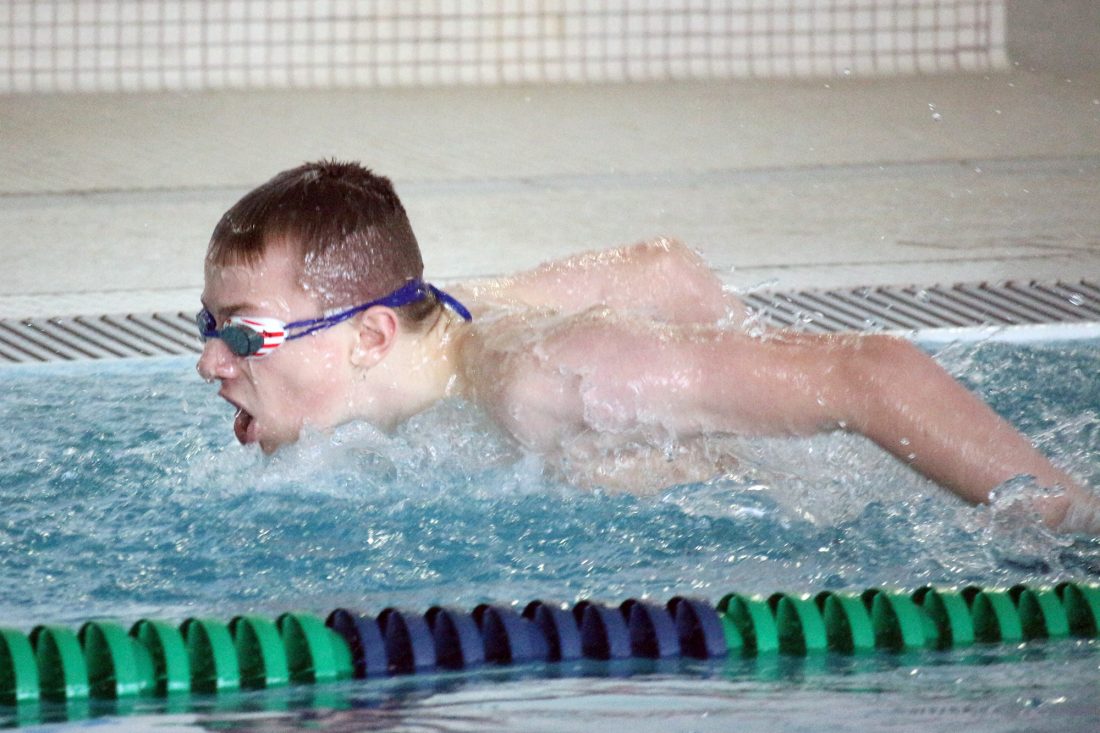 Joey Lundholm of Iron Mountain, shown here swimming a 100 butterfly, set a Northern Lights YMCA pool record (age 13-14) Saturday in the 1,000 yard freestyle during the Polar Plunge NLYMCA youth swim meet against swimmers from the Marquette and Menominee/Marinette YMCAs. Lundholm, 14, covered the distance in 12 minutes, 27.01 seconds. The NLYMCA swim team competes next at the Delta County YMCA in Escanaba on Friday and Saturday. (Ron Deuter photo)