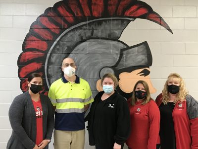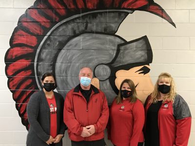 Connor Sports of Amasa recently made a $500 donation to the Forest Park scoreboard project. From left are Gail Brzoznowski, Forest Park Sports Boosters; David Grandt, plant director, Connor Sports; Haley Hudson, human resources manager, Connor Sports; and Teresa Kudwa and Debi Bendick, Forest Park Sports Boosters. The boosters and school district thank Connor Sports for their continued support.