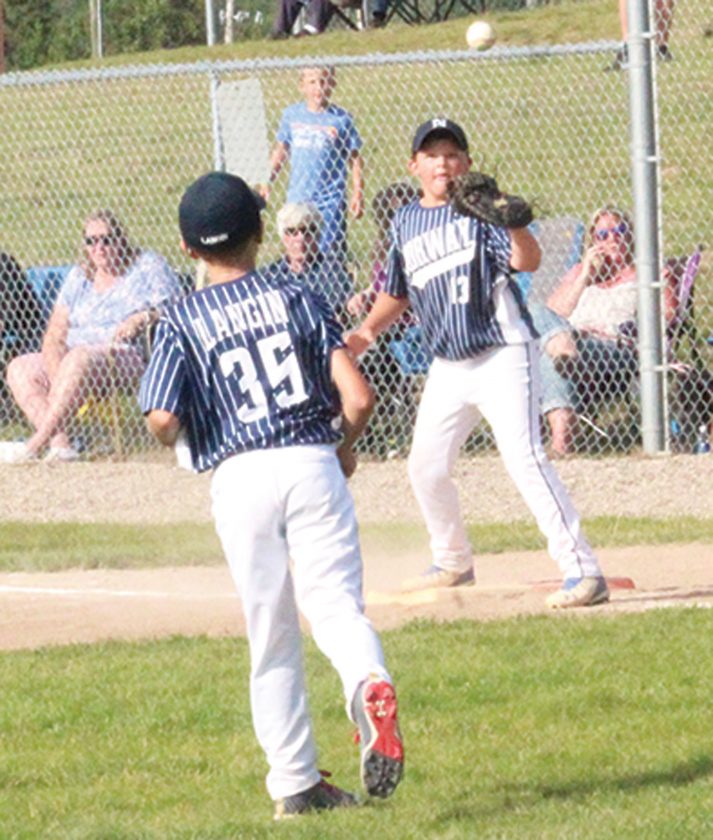 (Matt McCarthy/Daily News photo) NORWAY PITCHER HUNTER Langin (35) throws the ball to first baseman Colton Lord (13) for an out in Monday’s Michigan District 10 9-10 year old All-Star game at Marion Park in Norway.