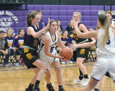 - Niagara junior Morgan Borchardt (13) stops a Suring defender in her tracks as she sets a screen for teammate Abigail Wells (12) in order to relieve some of the ball pressure on Suring’s defense. In addition to applying some physical play, Borchardt scored 16 points in the win.