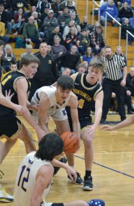 Junior Nic Nora and classmate Cole Myllyla both recorded traditional three-point plays with less than 3:30 left to play to break a 41-all tie and secure the win at home.