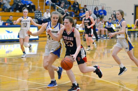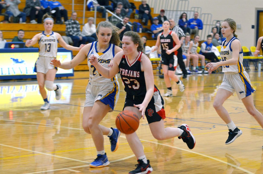 The Flivvers increased their lead to 17 early in the third quarter on a traditional 3-point play and two free throws from Geronimi and two free throws from Paige Olsen. After the Lady Trojans cut the gap to 13 on buckets from Lilly Post and Gracie Peterson, Kingsford’s Abby Terrian sank two free throws and a triple to push the Flivvers to a 33-15 lead after three quarters.