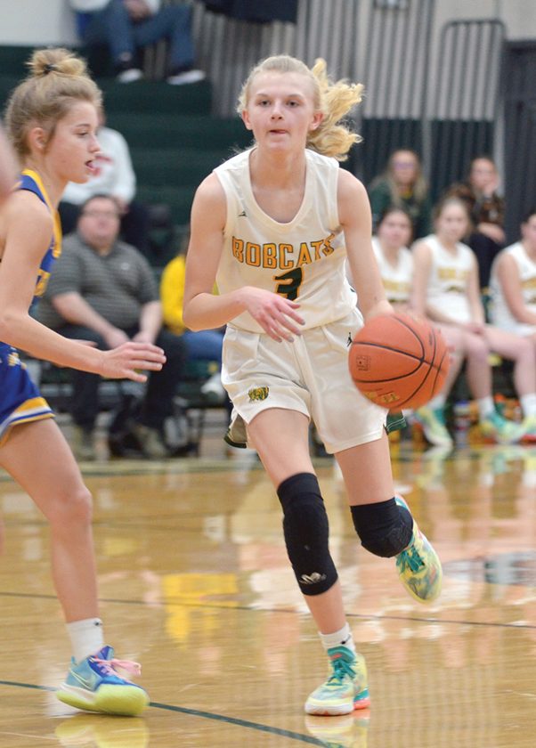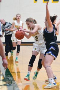 The Florence Ladycats youthful backcourt of Isabella Millan (2) and Kamdan Johnson (0) were recently honored by the Northern Lakes Conference for their efforts during the 2021-22 basketball season. Johnson, a freshman, was the second-leading scorer and ran the point for the Ladycats. She was given honorable mention by the league. (Dennis Mansfield/Daily News photo)