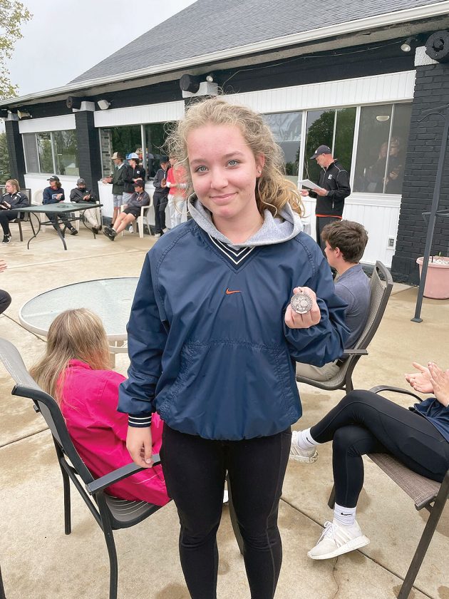 - Kingsford varsity golfer Grace Maki holds up her medal she earned at the final GNC meet of the 2022 season Thursday in Escanaba. Maki was also named to the GNC First-Team All Conference. (Courtesy photo)