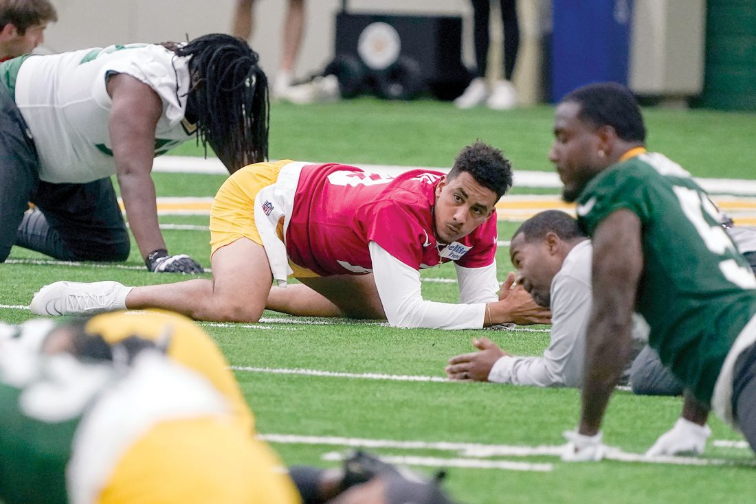 Green Bay Packers' Jordan Love stretches at the NFL football team's practice field training camp Tuesday in Green Bay, Wis. (Morry Gash/AP photo)