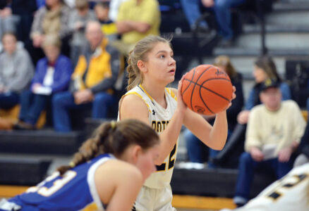 Iron Mountain senior Annslee Runsat (22) focuses on knocking down a free-throw attempt during the 2022 girls varsity basketball season. The Mountaineer was a standout not only basketball but also in volleyball and softball, earning recognition for her efforts in all three sports. (Dennis Mansfield/Daily News photo)
