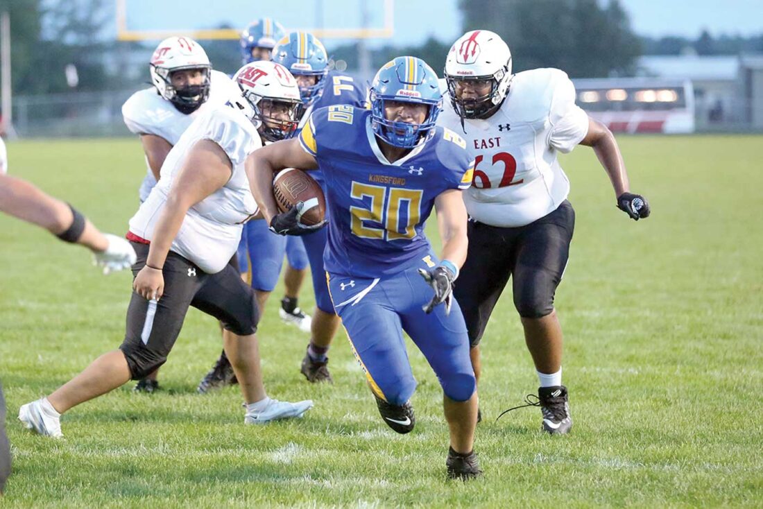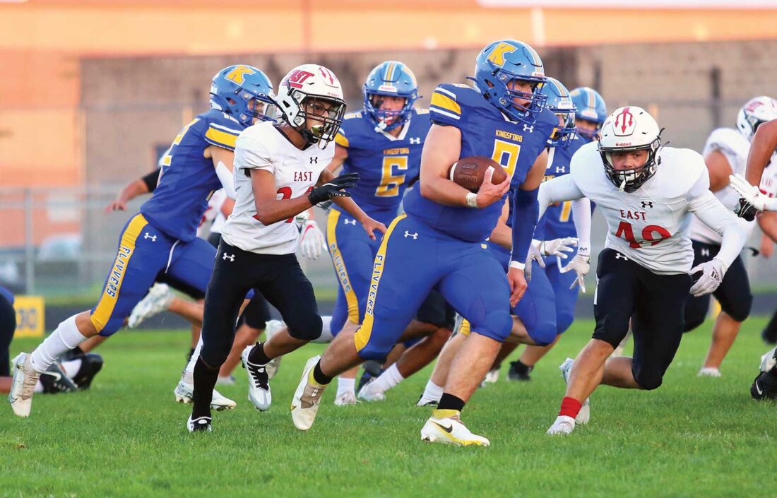 KINGSFORD — Seconds into Kingsford’s 2022 season opener against Green Bay East on Friday night, Flivver senior returner Nic Nora broke free of the coverage, ripped through some tackles near midfield and wasn’t stopped until he was inside the Red Devil 5-yard line.