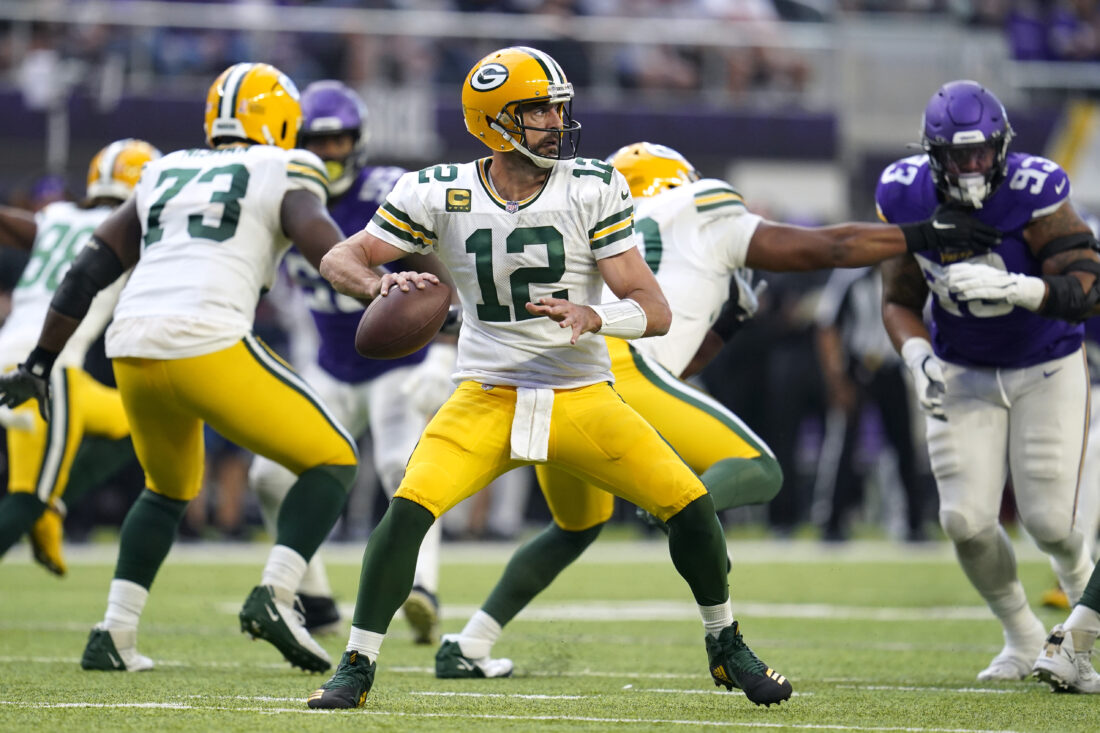 - Green Bay Packers quarterback Aaron Rodgers (12) throws a pass during the second half of an NFL football game against the Minnesota Vikings, Sunday, Sept. 11, 2022, in Minneapolis. (AP Photo/Abbie Parr)