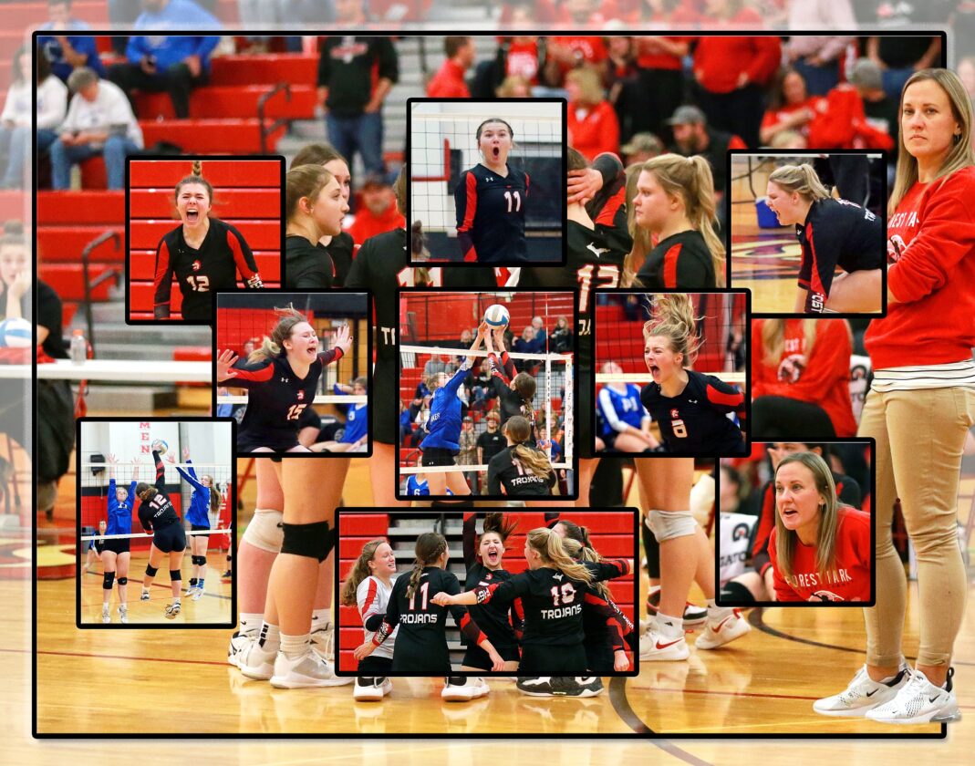 The Lady Trojans’ six-match winning streak propelled them into the school’s first volleyball state semifinal match since 2015, pitted against No. 4 Mount Pleasant Sacred Heart, who entered the match with a 42-7-6 record and returning all-state hitters Angel Brown and Lillie Laney.