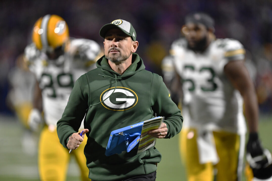 - Green Bay Packers head coach Matt LaFleur runs to the locker room at the halftime during an NFL football game against the Buffalo Bills Sunday, Oct. 30, 2022, in Orchard Park. (AP Photo/Adrian Kraus)