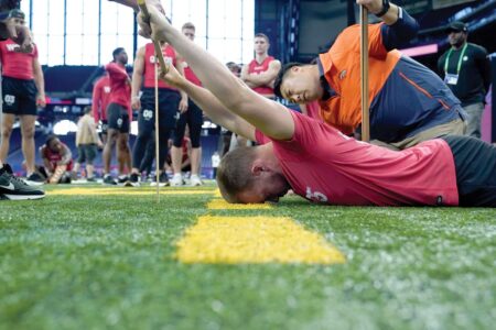 Four receivers posted vertical jumps of at least 40 inches — Bryce Ford-Wheaton of West Virginia (41), Rashee Rice of TCU (41), Quentin Johnston of TCU (40 1/2) and Jalin Hyatt of Tennessee (40). Hyatt was tops in the broad jump (11 feet, 3 inches), just ahead of Johnston and Demario Douglass of Liberty, who both logged 11-2.
