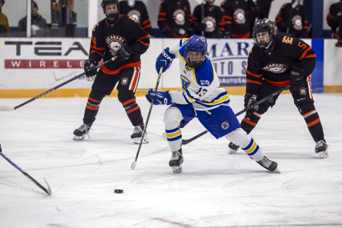 Tuesday’s contest was scoreless for the first five minutes before senior Hunter Allen got Esky on the board. He added a second goal in the third. Johnson had a goal, and Bink tallied three assists. Seniors Ben Sands and Carson Hughes each scored a goal, and freshmen Henry Sholten and Chase Korpi added tallies. Escanaba scored twice on the power play and had two shorthanded goals.