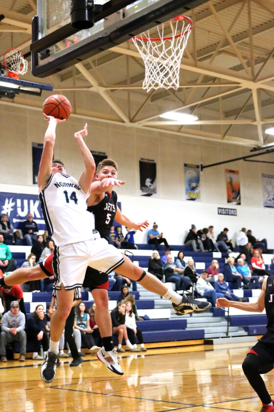 NORWAY – The Norway Knights held visiting North Central to one point in the second quarter and built a 25-point cushion by halftime on their way to their third consecutive win, a 66-23 triumph over the Jets in a Skyline Central Conference matchup Thursday.