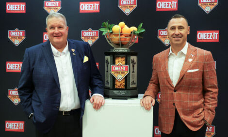 Michigan interim head coach Biff Poggi, left, and Texas head coach Steve Sarkisian, right, pose with the Citrus Bowl trophy during a NCAA college football news conference in Winter Park, Fla., Monday, ahead of their teams' New Year's Eve appearance in the bowl in Orlando, Fla. (Joe Burbank/Orlando Sentinel via AP)