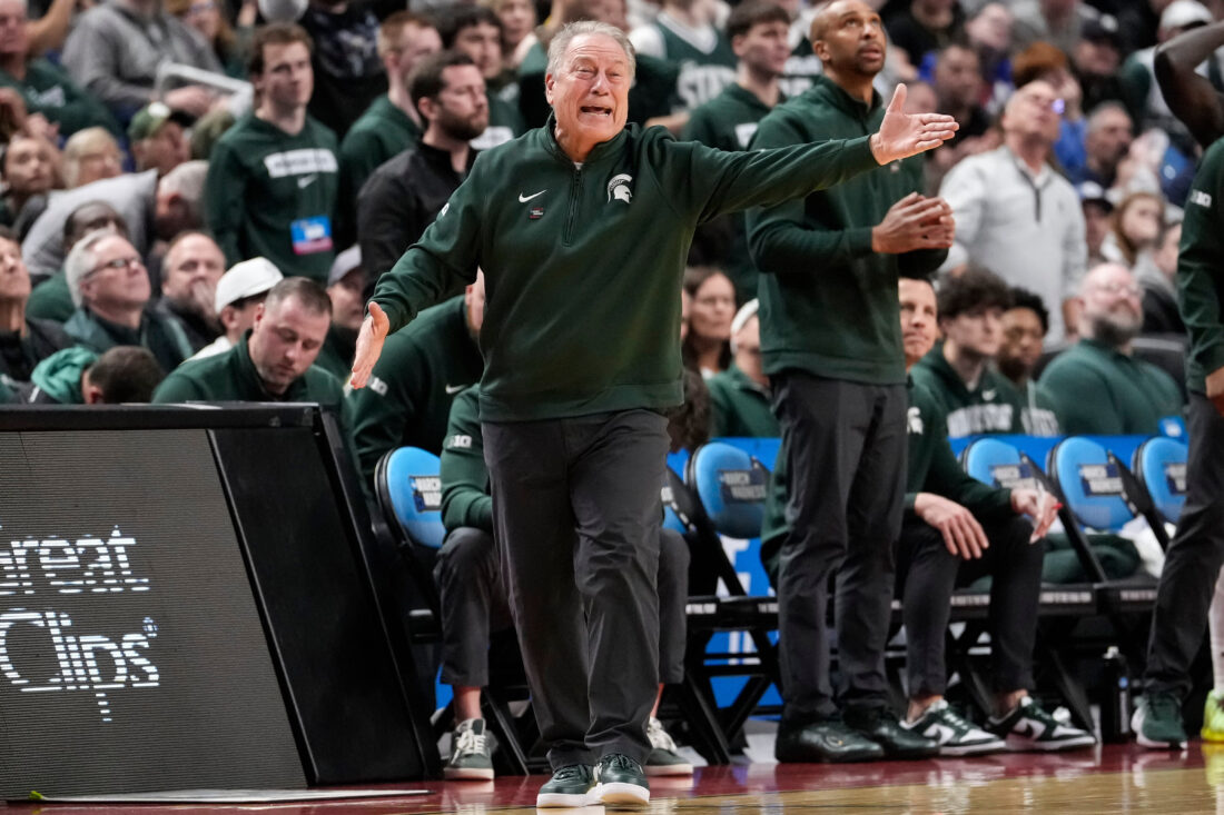 - Michigan State head coach Tom Izzo, center, yells at a referee during the second half against Louisville in the second round of the NCAA college basketball tournament, Saturday, March 21, 2026, in Buffalo, N.Y. (AP Photo/Yuki Iwamura)