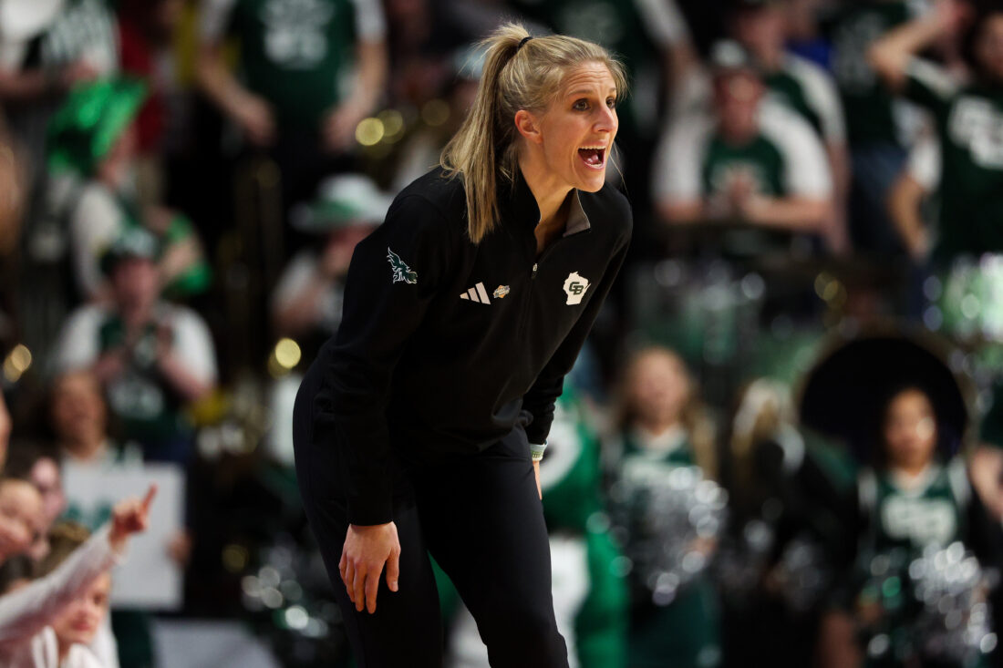 Green Bay head coach Kayla Karius reacts during the first half in the first round of the NCAA college basketball tournament against Minnesota on Friday in Minneapolis. (AP Photo/Matt Krohn)