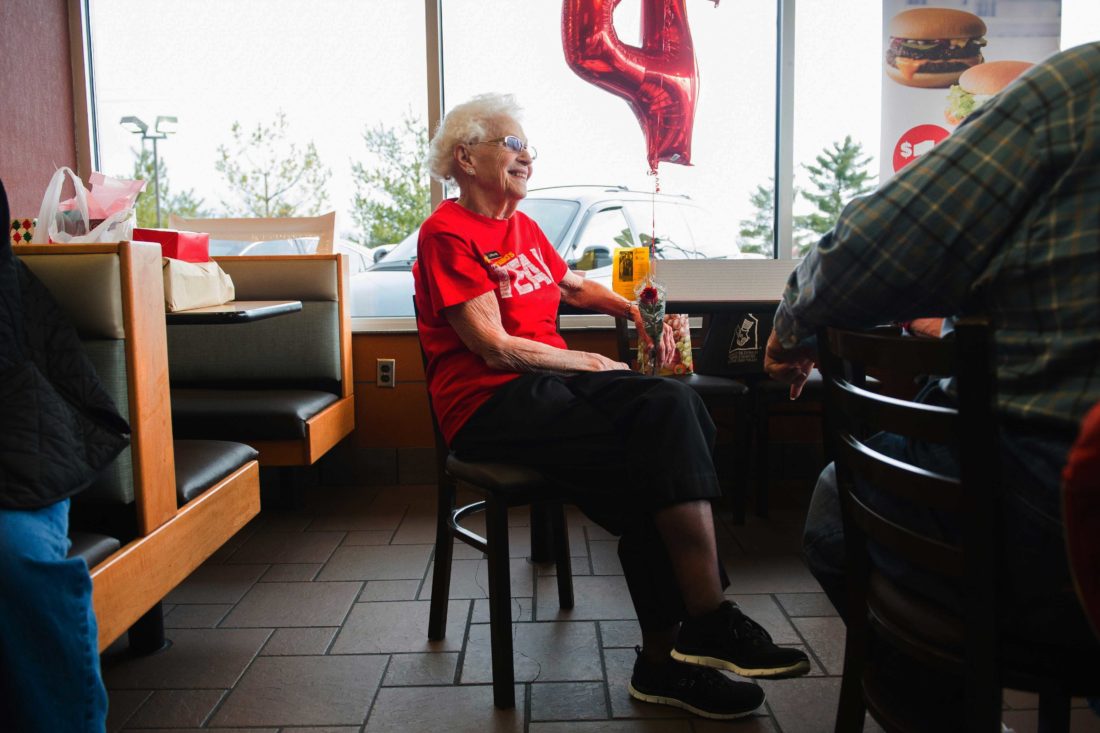 AP Photo In a March 24, file photo, Loraine Maurerchats visits with customers at the N. Green River McDonald's location in Evansville, Ind., where a celebration was held in recognition of her more than four decades of work at local McDonald's restaurants. More Americans age 65 and over are still punching the clock, and the last time the percentage was this high was when John F. Kennedy was in the White House. In April 2017, 19 percent of Americans age 65 and over were still working, according to government data released Friday. That’s the highest rate since 1962, and it caps a long trend higher since the figure bottomed out at 10 percent in 1985.