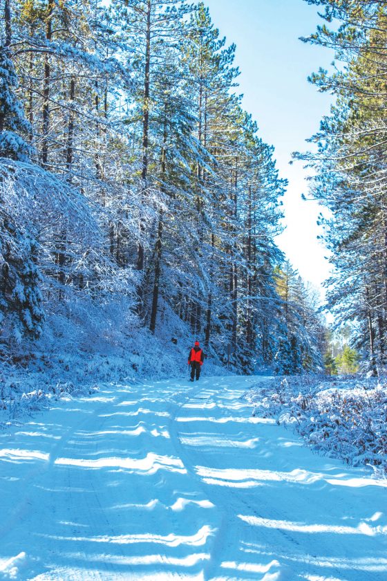 A hunter walks through the snow in Iron County on a November morning. (Michigan Department of Natural Resources photo)