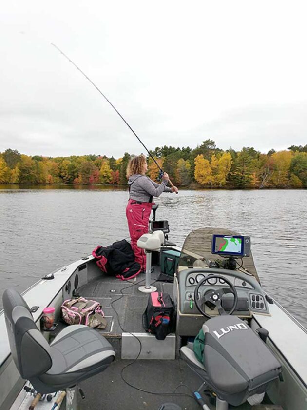 LADIES’ MUSKY FISHING School participant casts her reel. (WPR/Photo courtesy of Amanda Wilson)