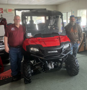 The machine that Prisk won was a 2025 Honda Pioneer 700-4 purchased from Cycle City in Escanaba. It has an added windshield and cabin roof.