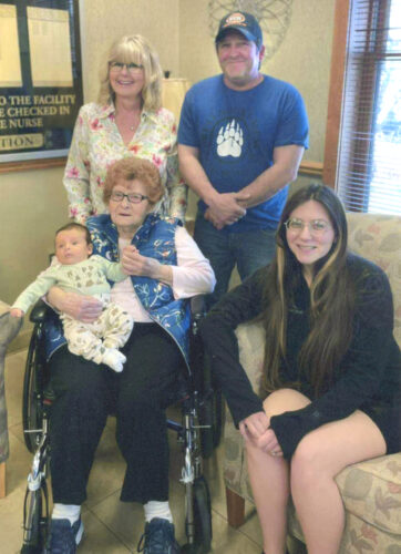 The Johnson/Steinbrecher/Luckey families recently gathered for a special five-generation photo. Seated in front are Margaret Johnson, 91, formerly of Sagola, now a resident of Iron County Medical Care Facility in Crystal Falls, holding her great-great-grandson, Aristotle Jay Luckey; and ...